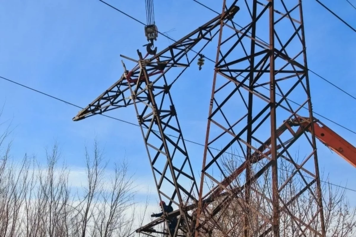 Рабочие демонтировали старую опору и установили новую, используя крупногабаритную спецтехнику. Ранее сообщалось, что на Дону более 115 бригад восстанавливали электроснабжение.