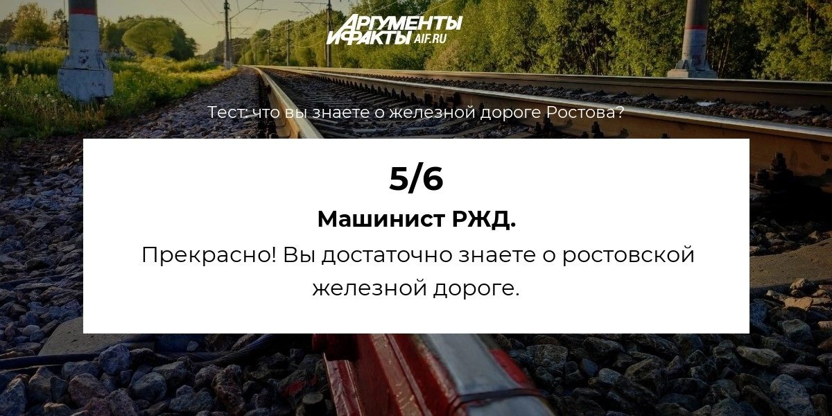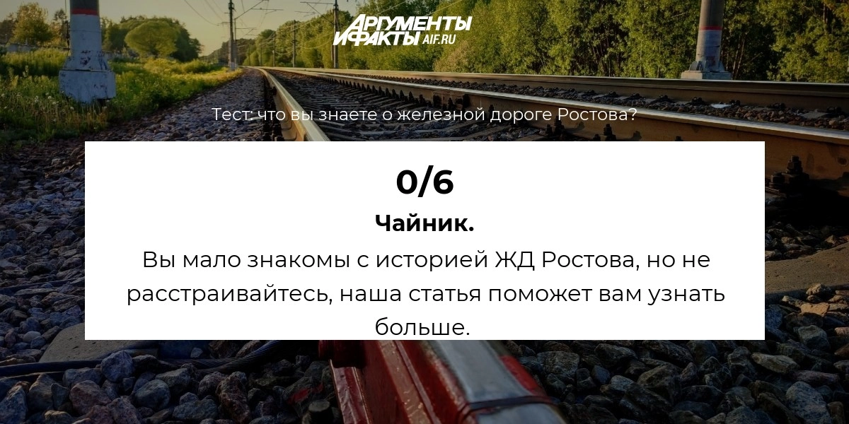 Пройдите тест и проверьте, насколько хорошо вы знаете историю ростовской железной дороги. Правильные ответы вы сможете найти в статье «Строили дорогу ценой жизни. Интересные факты о первой ЖД Ростова».
