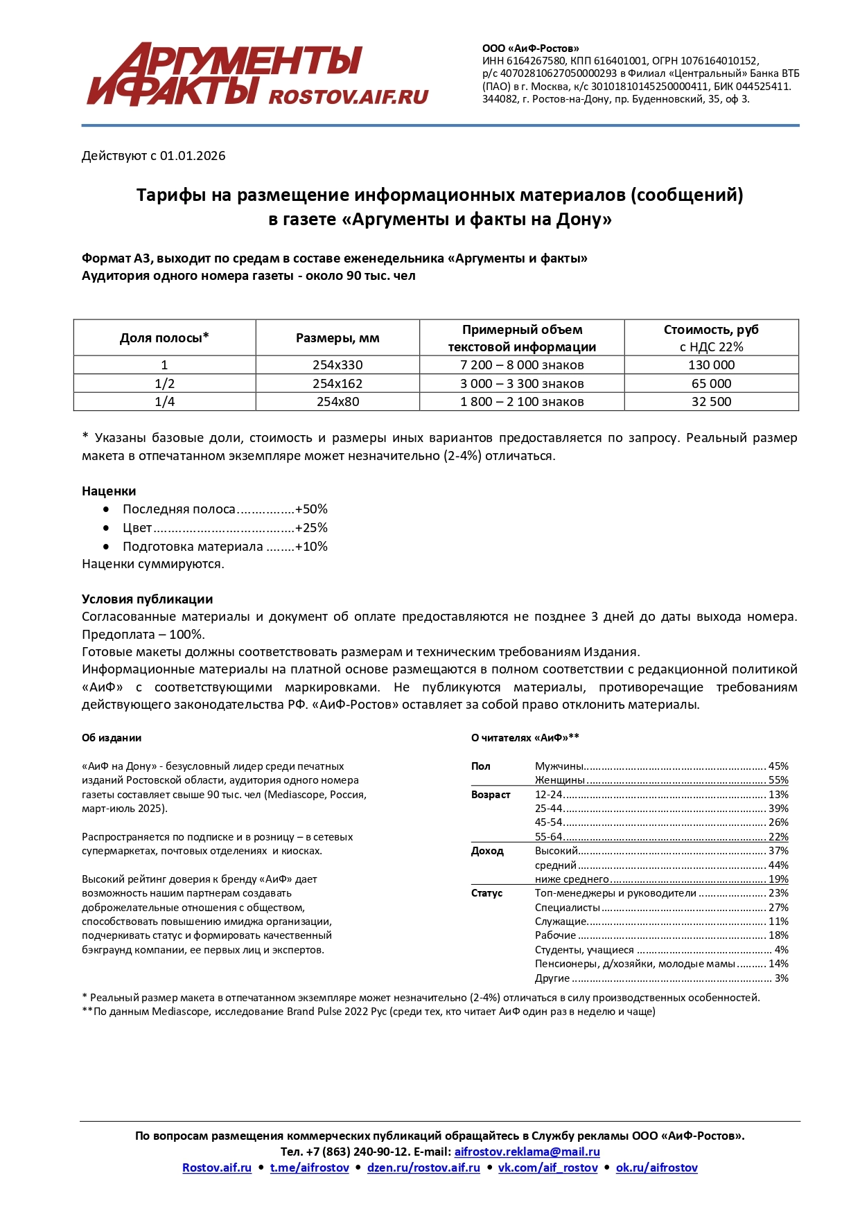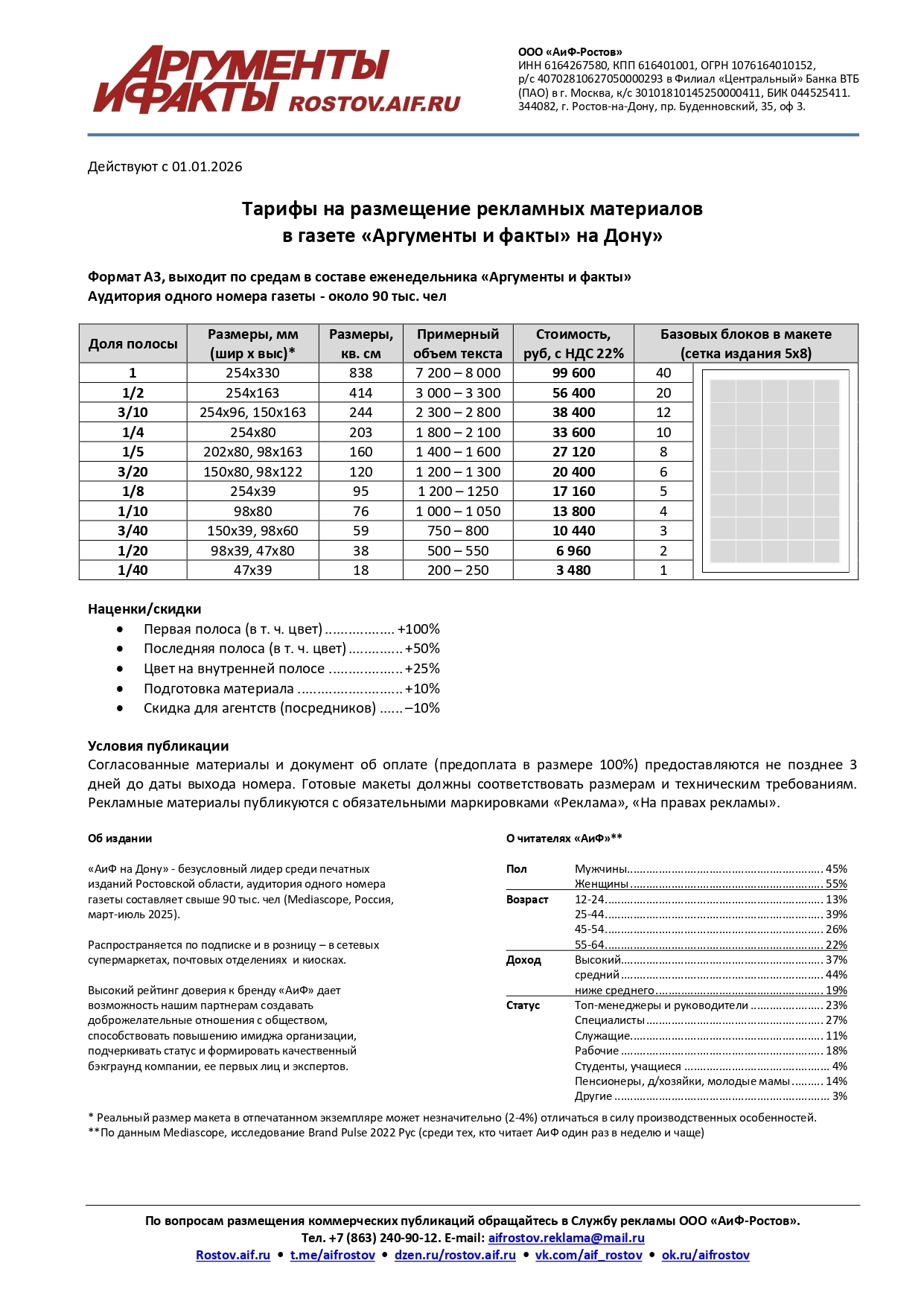 Тарифы на размещение (Ростов-на-Дону, pdf-формат):